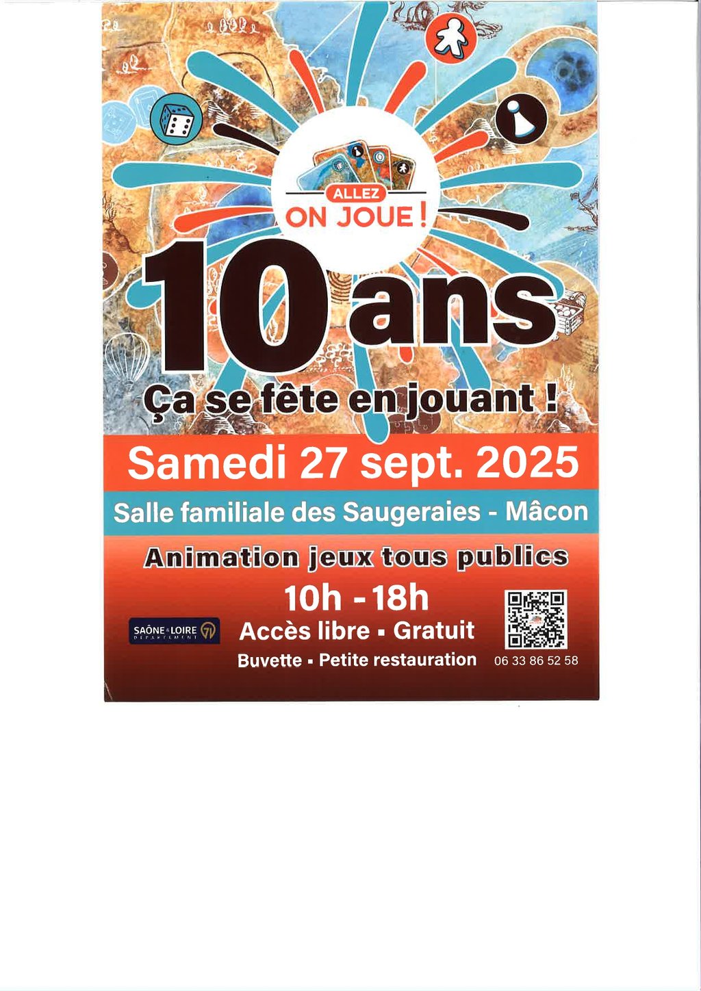 Allez on joue fête ses 10 ans et vous attend à la salle des Saugeraies à Mâcon le samedi 27 septembre de 10h00 à 18h00.