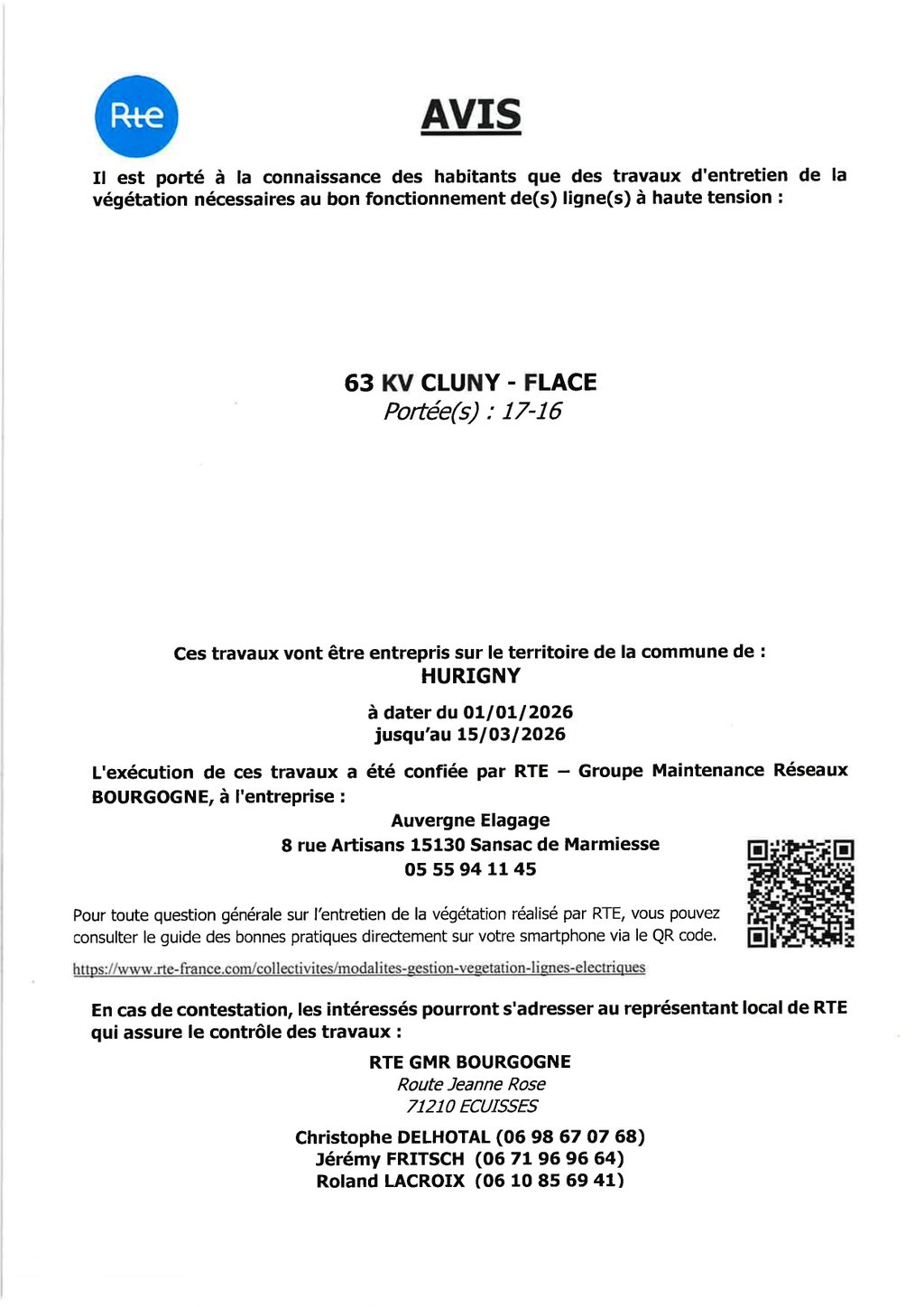Travaux d'entretien de la ligne haute tension à partir du 1er janvier 2026 au 15 mars 2026.
