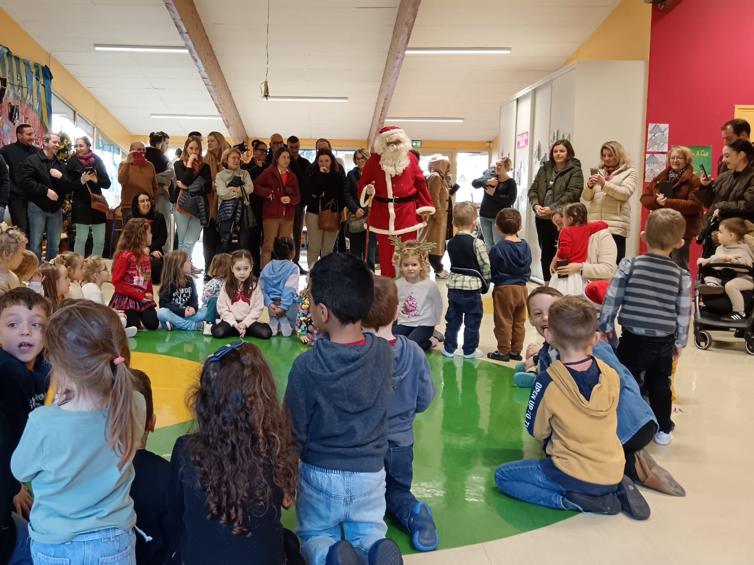 Le Père Noël en personne est venu à Hurigny à la rencontre des élèves de maternelle. Après un petit spectacle, il les a récompensés en offrant des chocolats et un petit livre à chaque enfant.