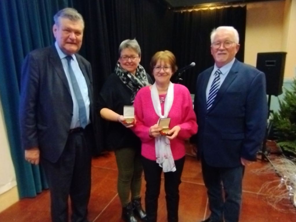 Vendredi soir, le maire d'HURIGNY, Dominique Deynoux, a remis la médaille de la reconnaissance communale à deux agents communaux qui ont fait valoir leur droit à la retraite.